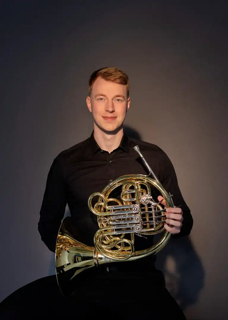 Simon Mayer aus Dinslaken, geboren 2001, erhielt seit seinem sechsten Lebensjahr Hornunterricht bei Tobias Liedtke. Von 2015 bis 2019 war er Jungstudent bei Will Sanders an der Hochschule für Musik Karlsruhe. 2014 gewann er den Lions-Musikwettbewerb im Distrikt Essen. 2015 bis 2019 spielte er im Bundesjugendorchester, zuletzt unter der Leitung von Kirill Petrenko. Als Mitglied des Gustav Mahler Jugendorchesters spielte er 2022/2023 u. a. unter der Leitung von Teodor Currentzis bei den Salzburger Festspielen.