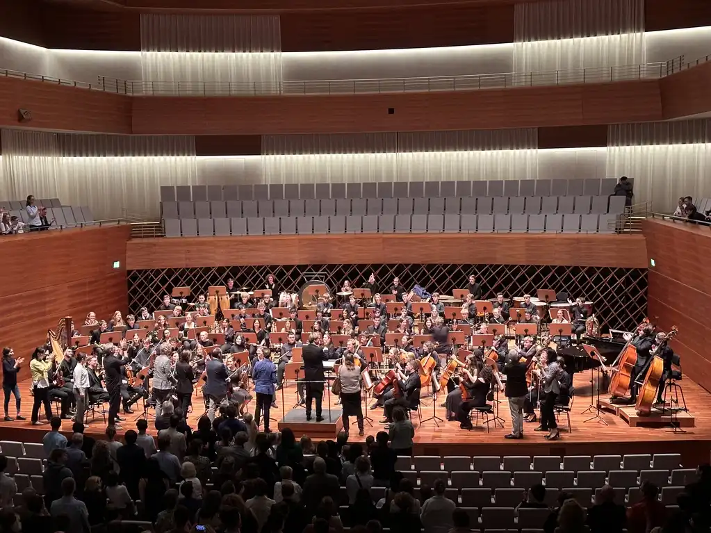 Nach einer intensiven Woche präsentieren die jungen Musikerinnen und Musiker stolz, was sie unter Anleitung des Dozententeams der Bochumer Symphoniker erarbeitet haben.