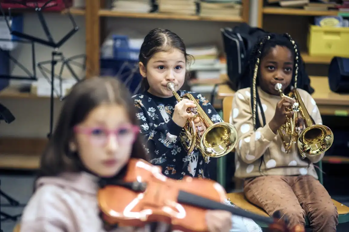 Die Schüler*innen aus dem Programm JeKits an den Bochumer Grundschulen präsentieren, was sie in diesem Schuljahr gemeinsam erarbeitet haben.